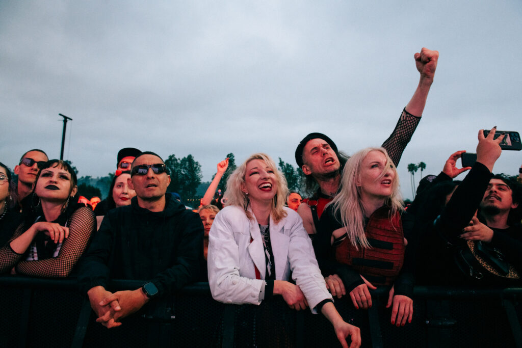 This was my third year attending Cruel World, so I was prepared for the oppressively sunny conditions that are typical for Pasadena in the spring. Just seven days earlier, Just Like Heaven Fest took place at the same venue under sweltering hot weather conditions. With several removable layers, sunscreen, sunglasses, a handheld fan in my bag, and a locker rental, I was prepared to battle the heat. I caught some of DECEITS’ set as I walked through the main gates and immediately went to my locker to store my jacket and keys. I headed over to the Outsiders stage, where I spent most of the day.