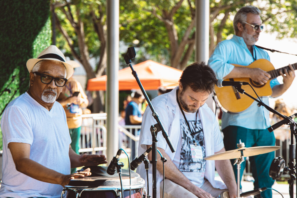 First up on the stage was Rogê who entertained with his cool, Brazilian grooves, a nod to “The Brazilian Hour” hosted by Sergio Mielniczenko every Saturday and Sunday at 9 a.m. A handful of the salseros already in attendance showed off their samba moves during his performance.